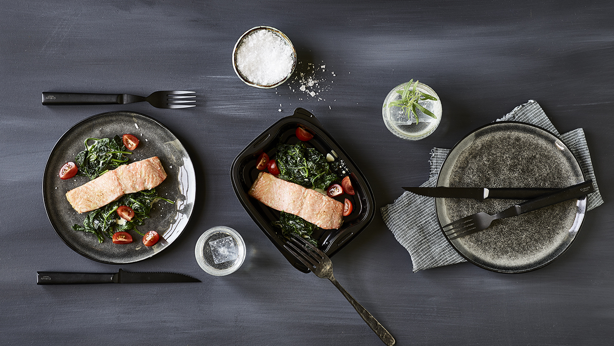 This helps their full range of products achieve a nice, coherent presentation. In addition, it is convenient that the container can be closed with lid and skin pack. In the end, the consumers get a convenient, solid container for heating meals in the oven”.