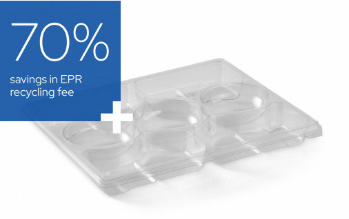 With this fee in place, the optimized Zen™ Selection Platter delivers a 70% reduction in recycling fee (tray+lid) compared to the product variant in PP Chalk variant. Depending on the market and the size of the recycling fee, this can turn into a considerable amount over time.