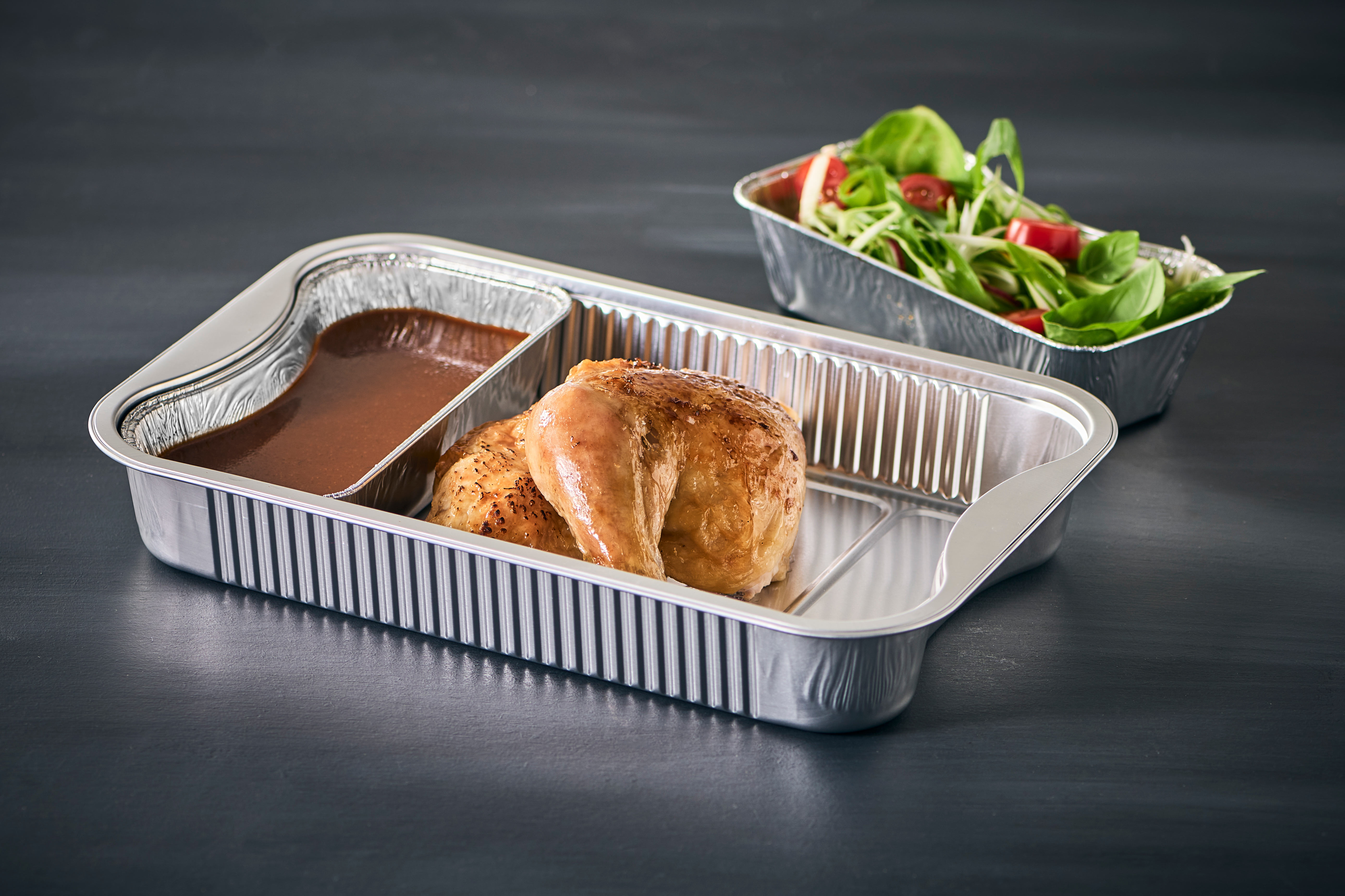 A convenient food packaging solution for ready meals as they can be used as cooking trays in the oven, microwave or on the grill. On top of that, the consumer can also serve food on the dinner table with a Ready2Cook® aluminium container.