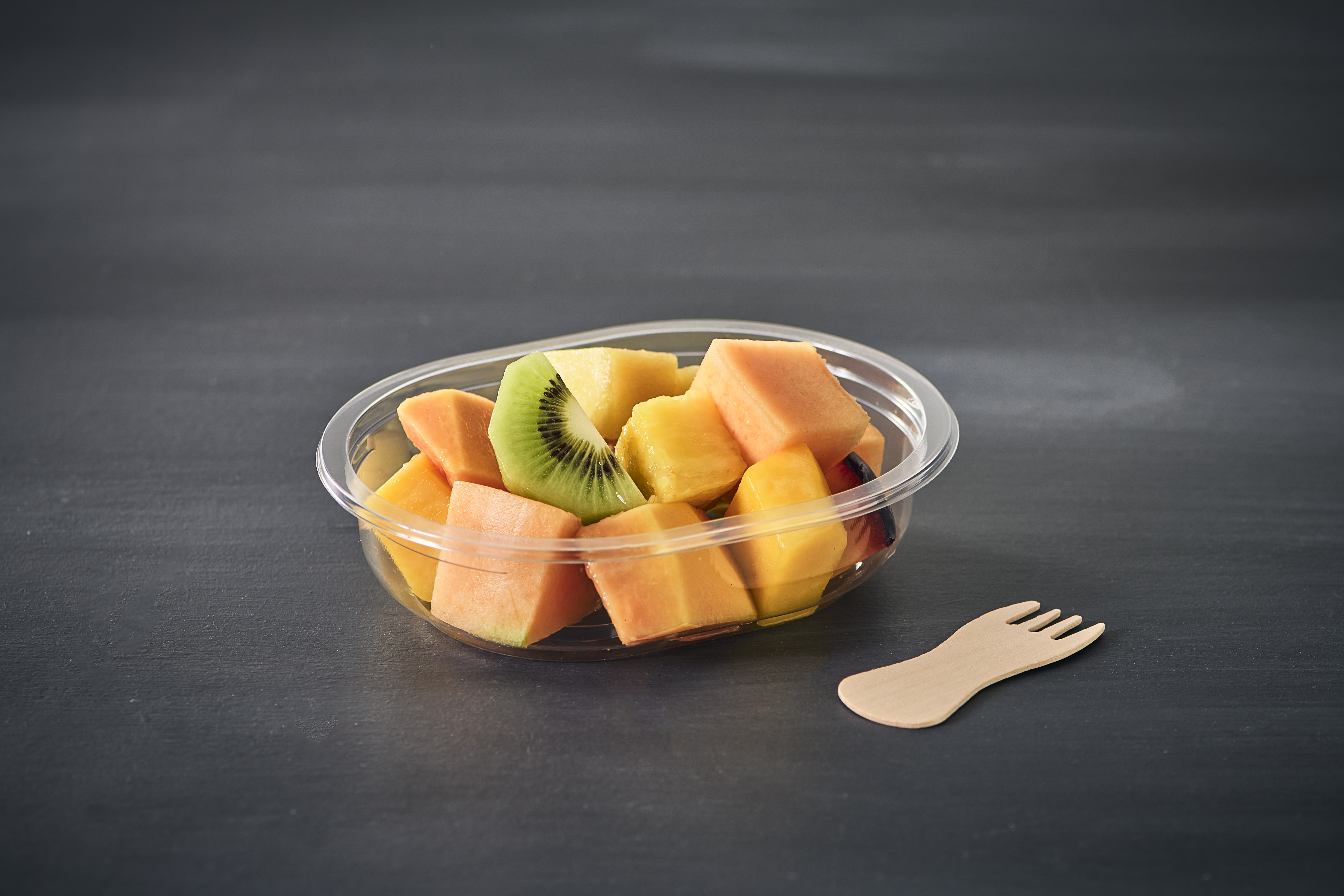 All platters are available in clear rPET and black rPET. Clear rPET is a material that fulfils all criteria for a circular food packaging solution: it is clear mono-material and it contains 85% recycled content. Furthermore, the clear platters are easy-to-recycle after use.